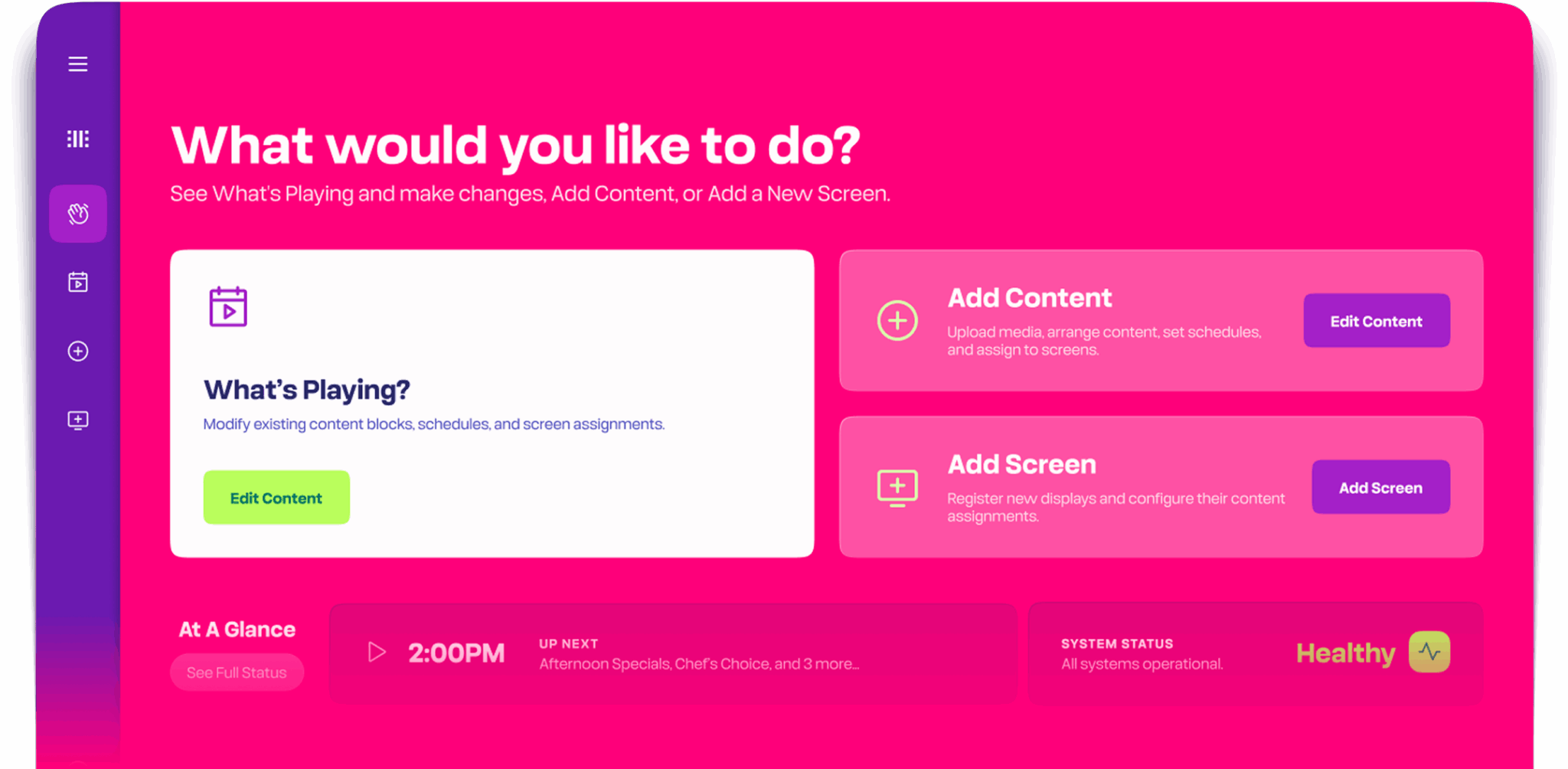 We source and deliver the right digital signage hardware for your business needs, customer experience, and budget, so your CMS runs on hardware you can trust.